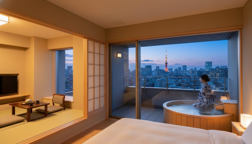 ここからは、実際に都内で1万円台(1名あたりの料金、または2名1室の割引適用時など)で宿泊可能な、露天風呂付き客室のあるホテルを紹介します。※価格は時期やプランによって変動するため、必ず最新情報をご確認ください。