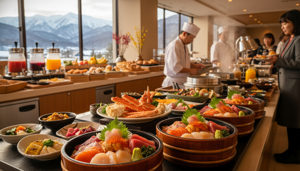大通公園の西側に位置し、こちらも会場は目の前です。特に西側の会場(雪遊びができるエリアなど)へのアクセスが良く、アクティブに雪で遊びたい子供がいるご家庭にぴったりです。 このホテルの特筆すべき点は、朝食ビュッフェのクオリティの高さです。北海道産の食材をふんだんに使った和洋折衷のメニューが並び、子供向けのメニューも充実しています。