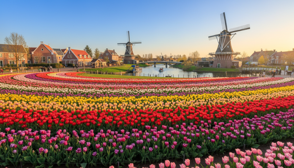 ハウステンボスは長崎県佐世保市にある日本最大面積のテーマパークで、モナコ公国とほぼ同じ広さを誇ります。 特に2026年の春休み期間(3月下旬〜4月上旬)は、名物のチューリップ祭りをはじめとするフラワーイベントや、夜間の圧倒的なイルミネーション「光の王国」が開催されるため、年間を通じて最も混雑する時期の一つです。