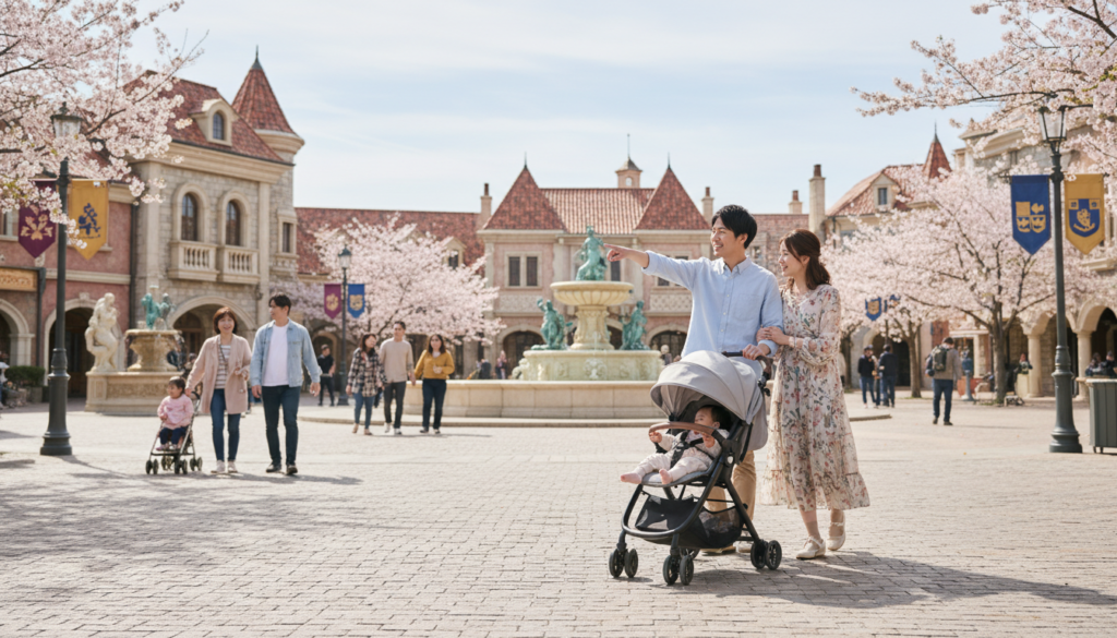 志摩スペイン村は赤ちゃん連れに非常に優しく、パーク内の指定レストランでは電子レンジが用意されていたり、スタッフに頼めば離乳食を温めてもらえたりします。授乳室やおむつ替えスペースもパーク内の複数箇所に清潔な状態で完備されているため、初めてのテーマパークデビューにも最適です。