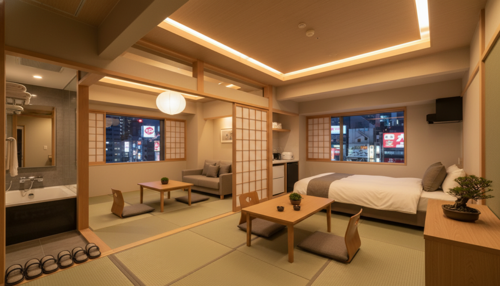特に、4人以上の家族連れが同じ部屋に泊まれる「ファミリールーム」や「和室」は数が限られているため、競争率が非常に高くなります。そのため、一般的なビジネスホテルで2部屋を予約するよりも、アパートメントタイプのホテルや、少し郊外の広めの部屋を持つホテルを狙うのがコツです。