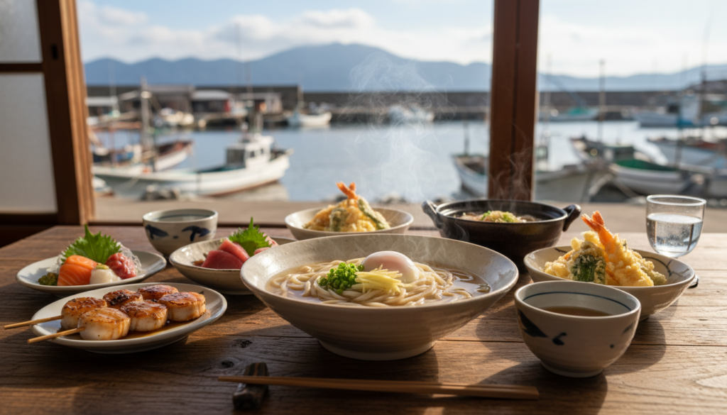 食事面も魅力で、五島牛・新鮮な魚介・郷土料理など、地元ならではのグルメが充実。外に出なくても食事が完結するため、長期滞在でもストレスがありません。