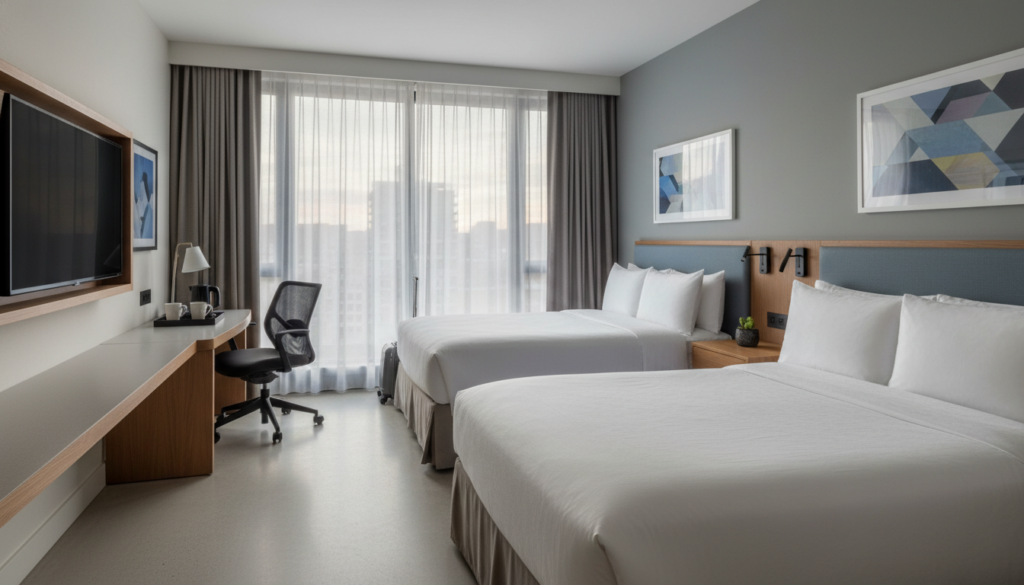 「せっかくの旅行でビジネスホテル?」と思うかもしれませんが、最近のビジネスホテルは侮れません。大浴場完備、無料朝食付き、小学生以下の添い寝無料など、家族連れにとってコスパが異常に高いサービスが充実しています。