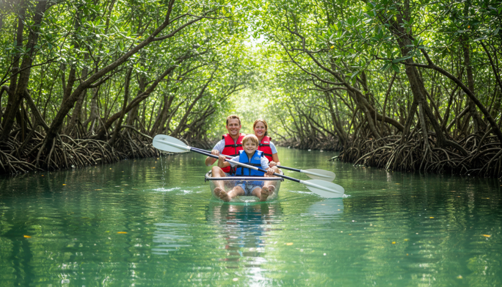 ・マングローブカヌーは波が少なく子連れでも安全に楽しめる